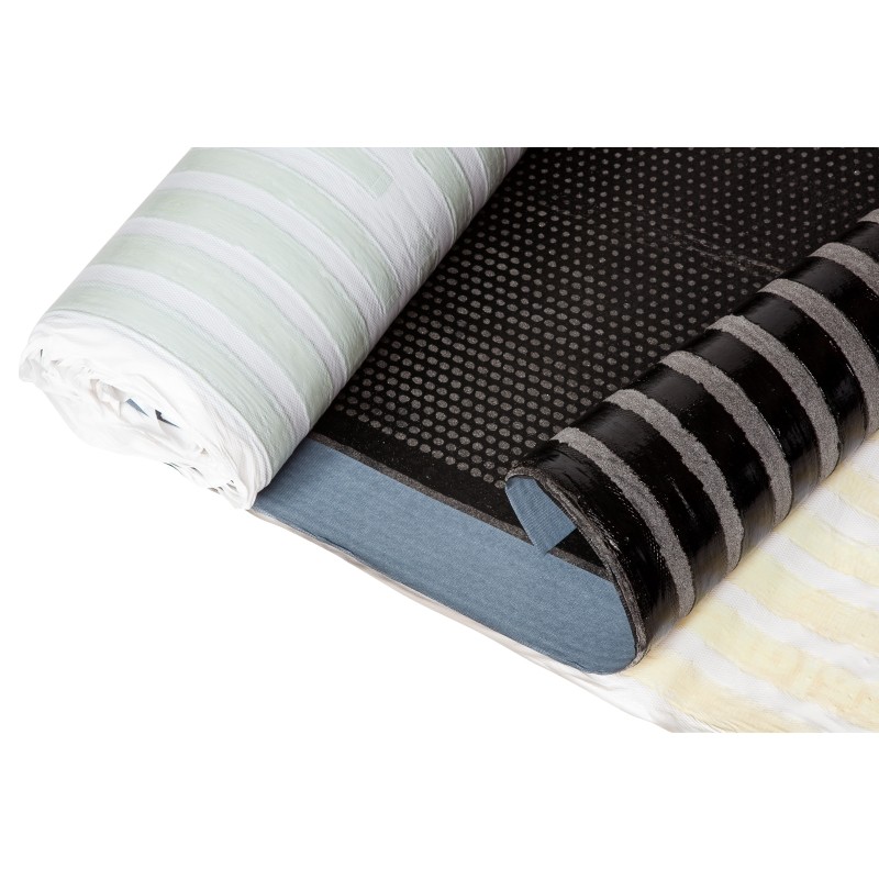 Feuille en bitume élastomère SBS adhésive en semi-indépendance, constituant la première couche d'une étanchéité bicouche